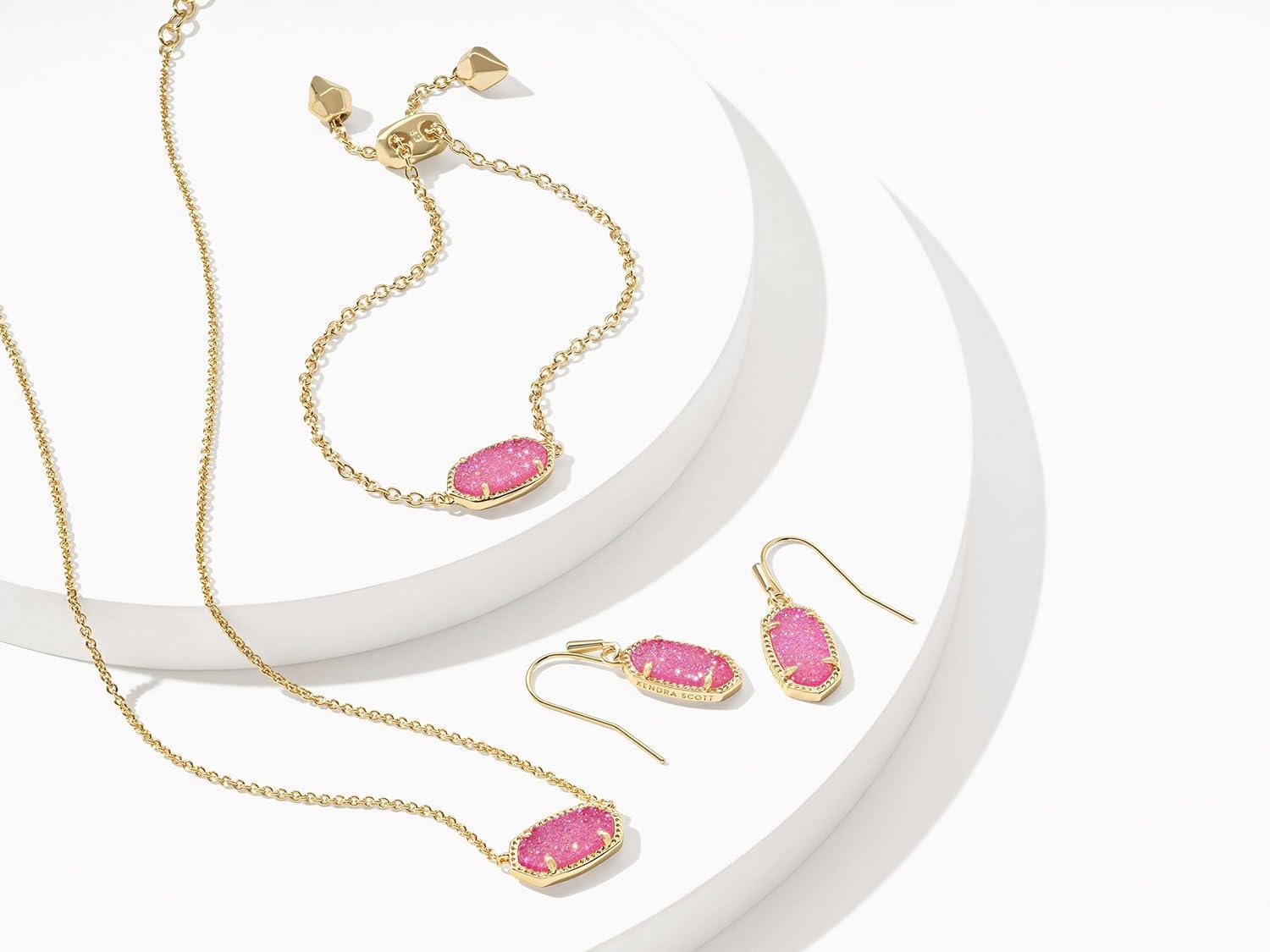 • Kendra Scott Elisa Pendant Necklace for Women, Fashion Jewelry, 14k Gold-Plated(GOLD – HOT PINK DRUSY)
