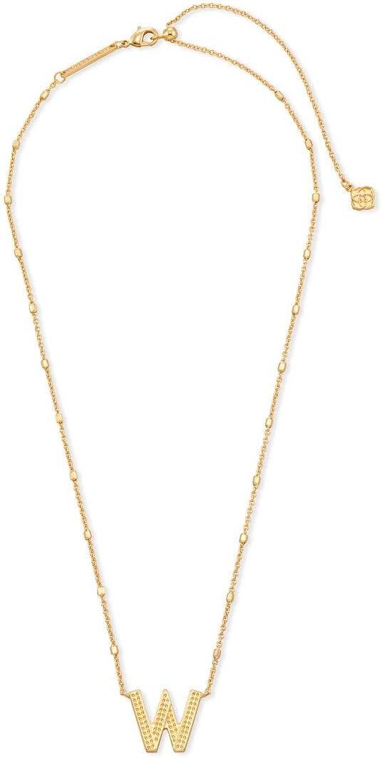 Kendra Scott Letters A-Z Pendant Necklace for Women, Fashion Jewelry, 14k Gold-Plated Brass(Letter W)