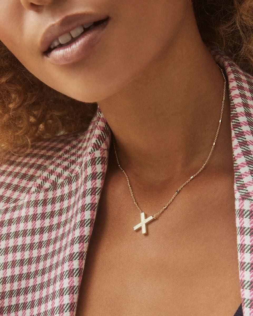 Kendra Scott Letters A-Z Pendant Necklace for Women, Fashion Jewelry, 14k Gold-Plated Brass(Letter X)