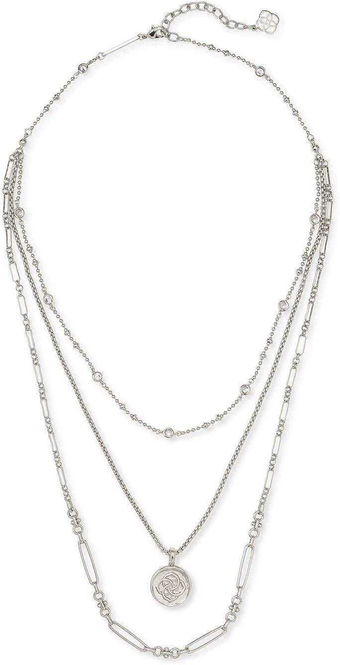 Kendra Scott Medallion Triple Strand Necklace, Fashion Jewelry for Women(RHODIUM)