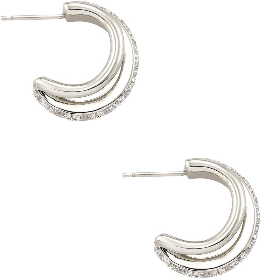 Kendra Scott Mikki Pave Huggie Earrings, Fashion Jewelry For Women(RHODIUM)