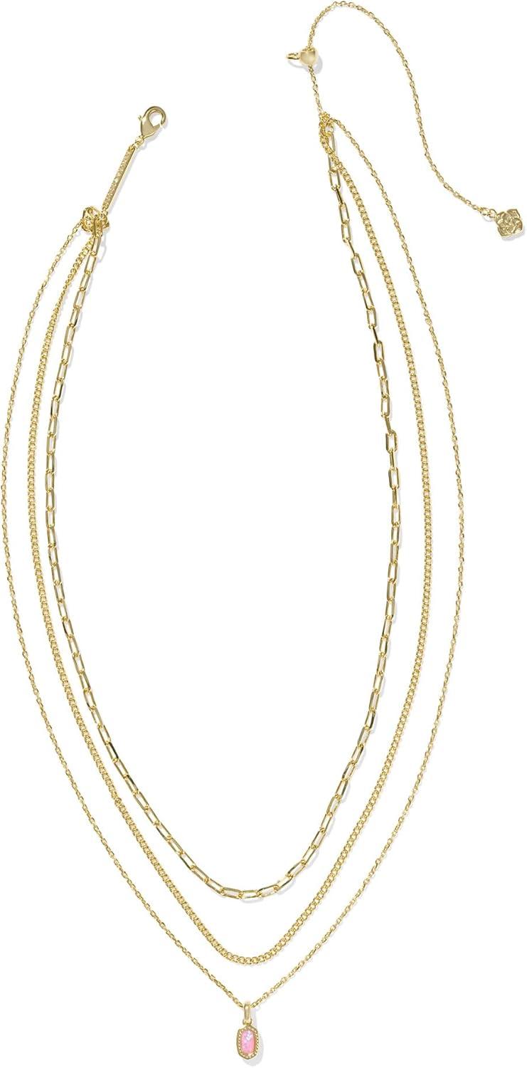 Kendra Scott Mini Elisa Triple Strand Necklace, Fashion Jewelry for Women(CARNATION KYOCERA OPAL)