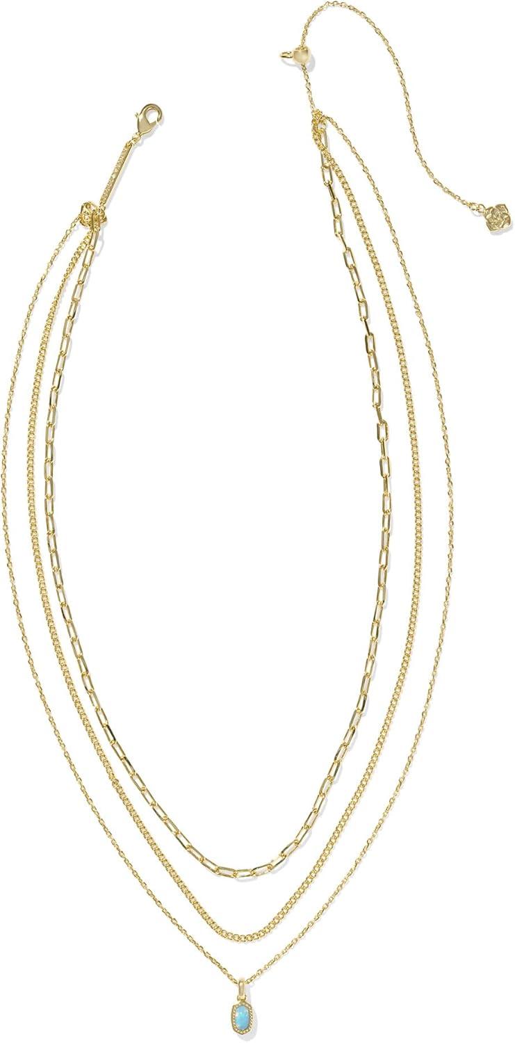 Kendra Scott Mini Elisa Triple Strand Necklace, Fashion Jewelry for Women(LIGHT TEAL KYOCERA OPAL)