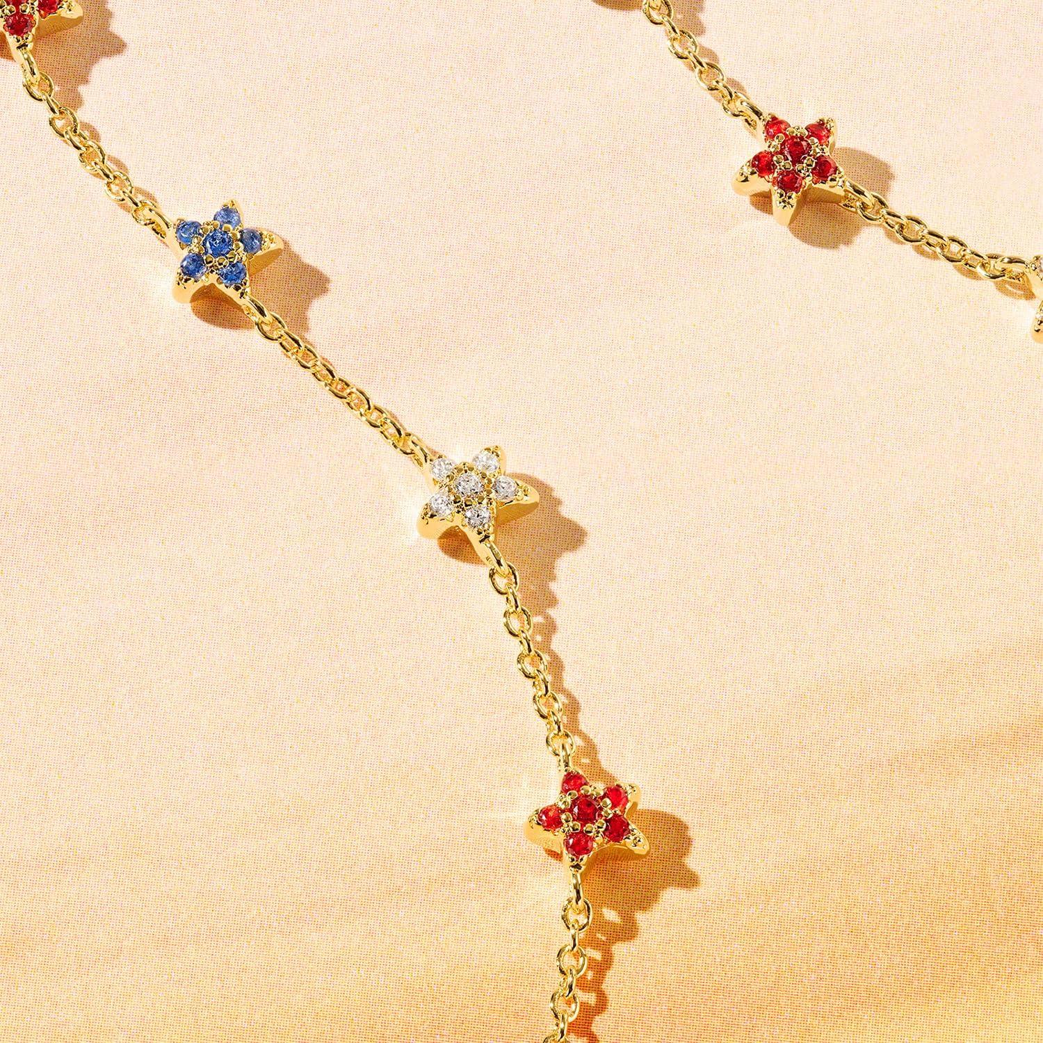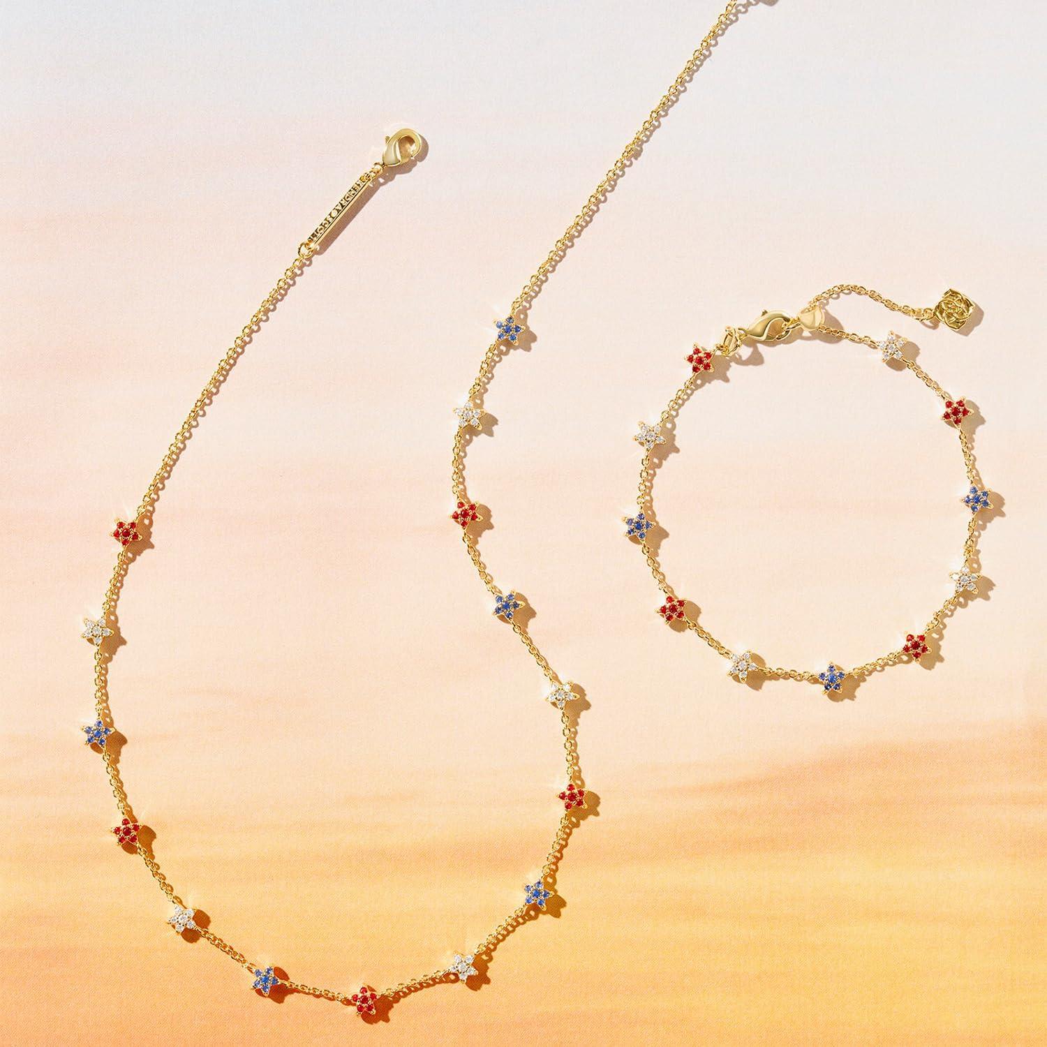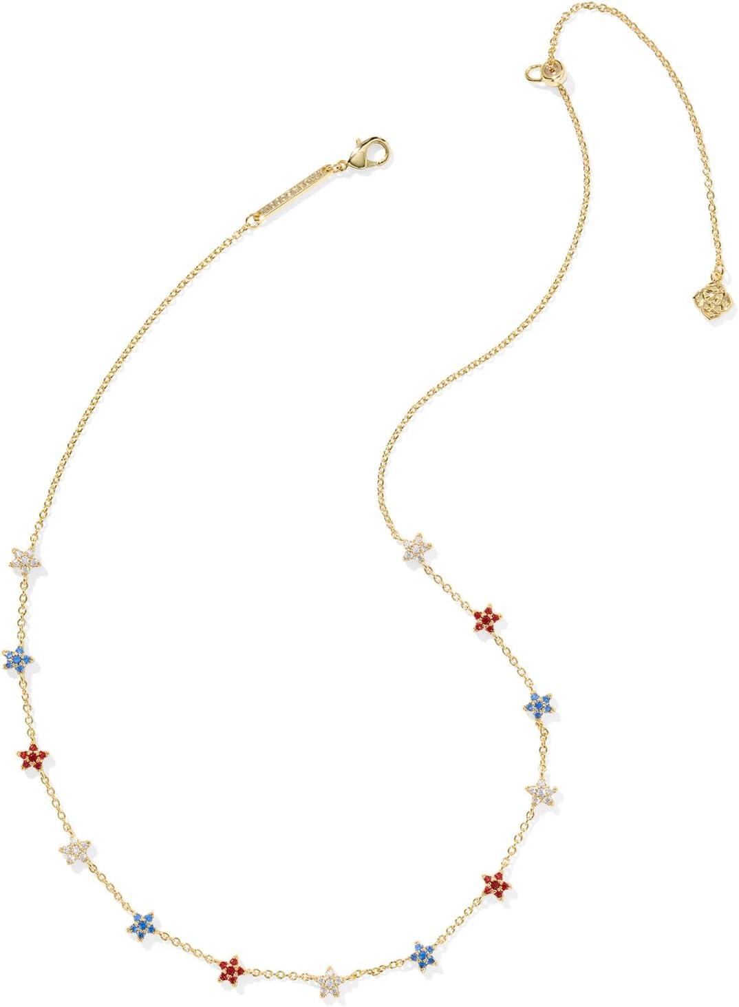 Kendra Scott Sierra Star Crystal Strand Necklace, Fashion Jewelry for Women(GOLD – RED WHITE BLUE MIX)