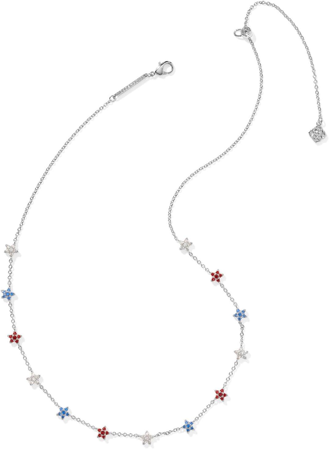 Kendra Scott Sierra Star Crystal Strand Necklace, Fashion Jewelry for Women(RHODIUM – RED WHITE BLUE MIX)
