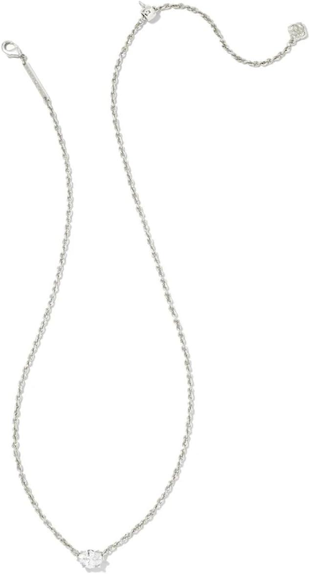 Kendra Scott Cailin Silver-Plated Brass Pendant Necklace in White Crystal, Fashion Jewelry For Women