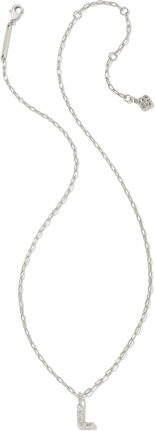 Kendra Scott Crystal Letter Short Pendant Necklace, Fashion Jewelry for Women(Letter L (RHODIUM-PLATED))