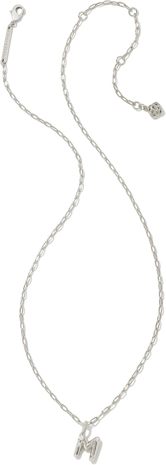 Kendra Scott Crystal Letter Short Pendant Necklace, Fashion Jewelry for Women(Letter M (RHODIUM-PLATED))