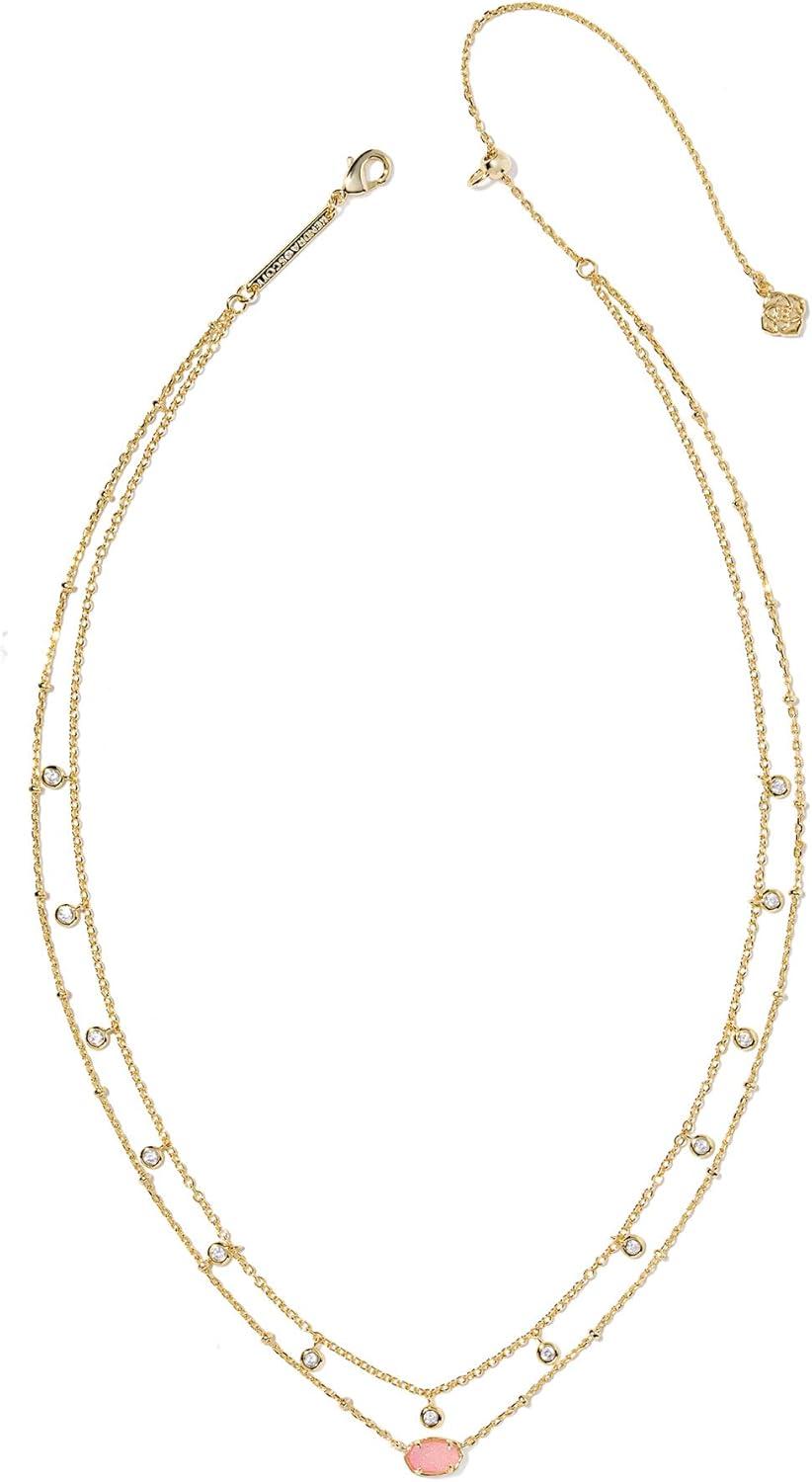 • Kendra Scott Emilie Crystal Multi Strand Necklace, Fashion Jewelry for Women(GOLD – LIGHT PINK DRUSY)