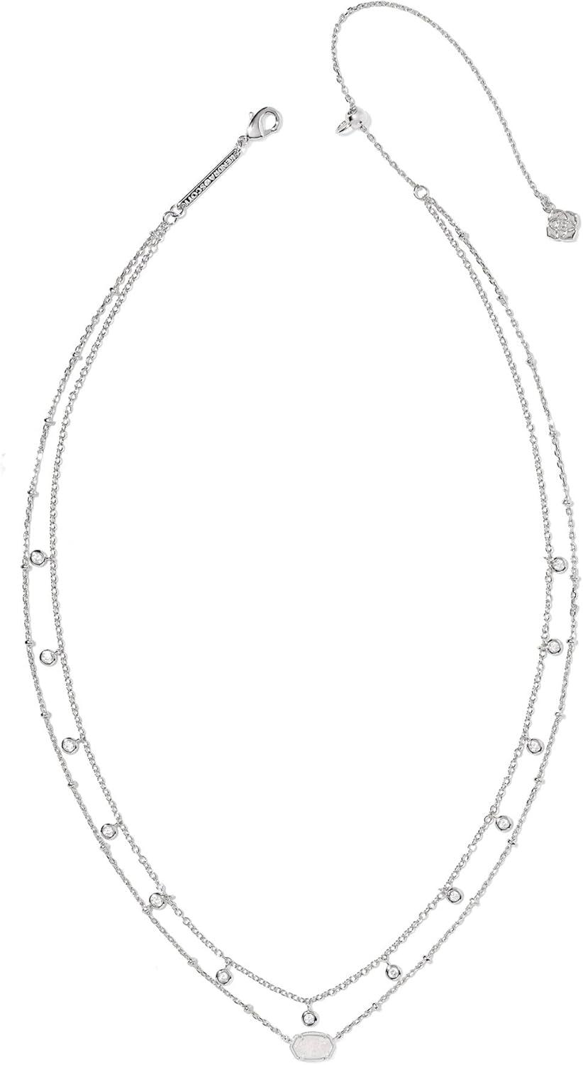 Kendra Scott Emilie Crystal Multi Strand Necklace, Fashion Jewelry for Women(RHODIUM – IRIDESCENT DRUSY)