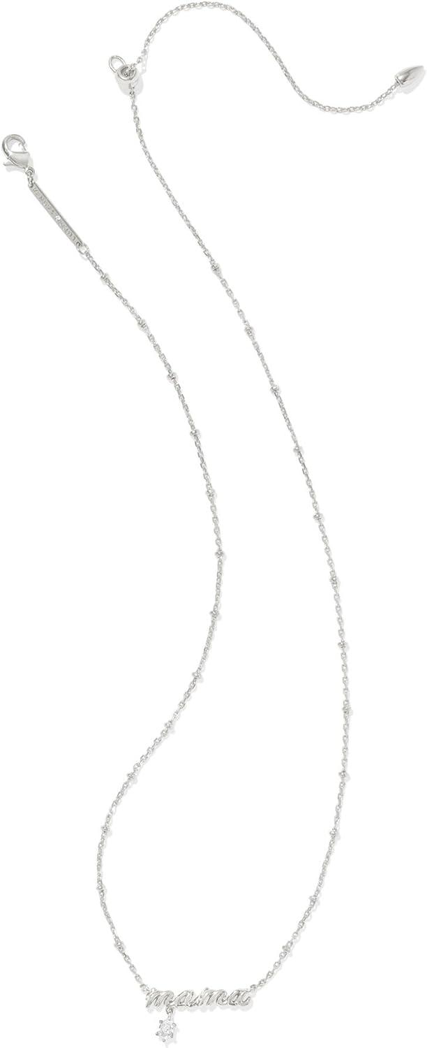 Kendra Scott Mama Crystal Short Pendant Necklace, White Cubic Zirconia, Fashion Jewelry for Women(RHODIUM METAL)