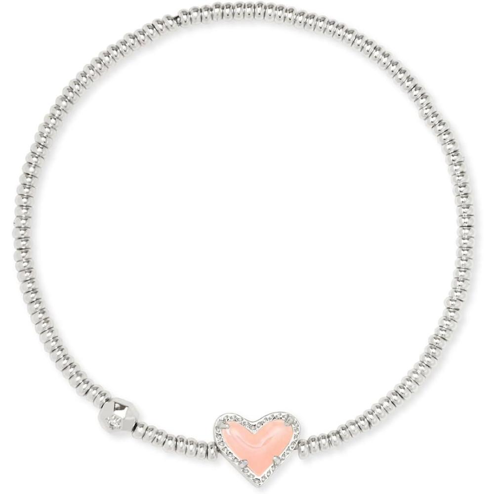 Kendra Scott Ari Heart Stretch Bracelet, Fashion Jewelry for Women(RHODIUM – ROSE QUARTZ)