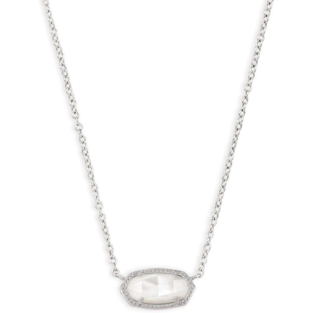 Kendra Scott Elisa Pendant Necklace for Women, Fashion Jewelry, 14k Gold-Plated(RHODIUM – white MOTHER OF PEARL)