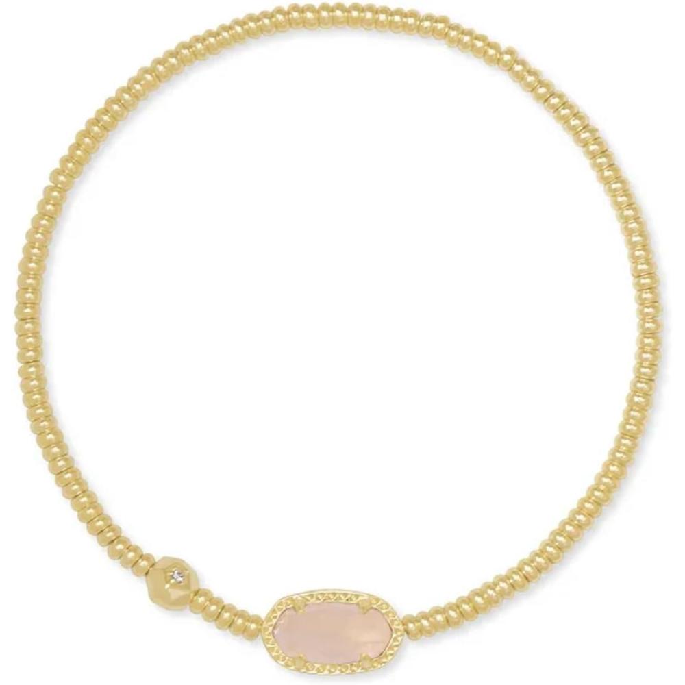Kendra Scott Grayson Crystal Stretch Bracelet, Fashion Jewelry for Women(GOLD – ROSE QUARTZ)