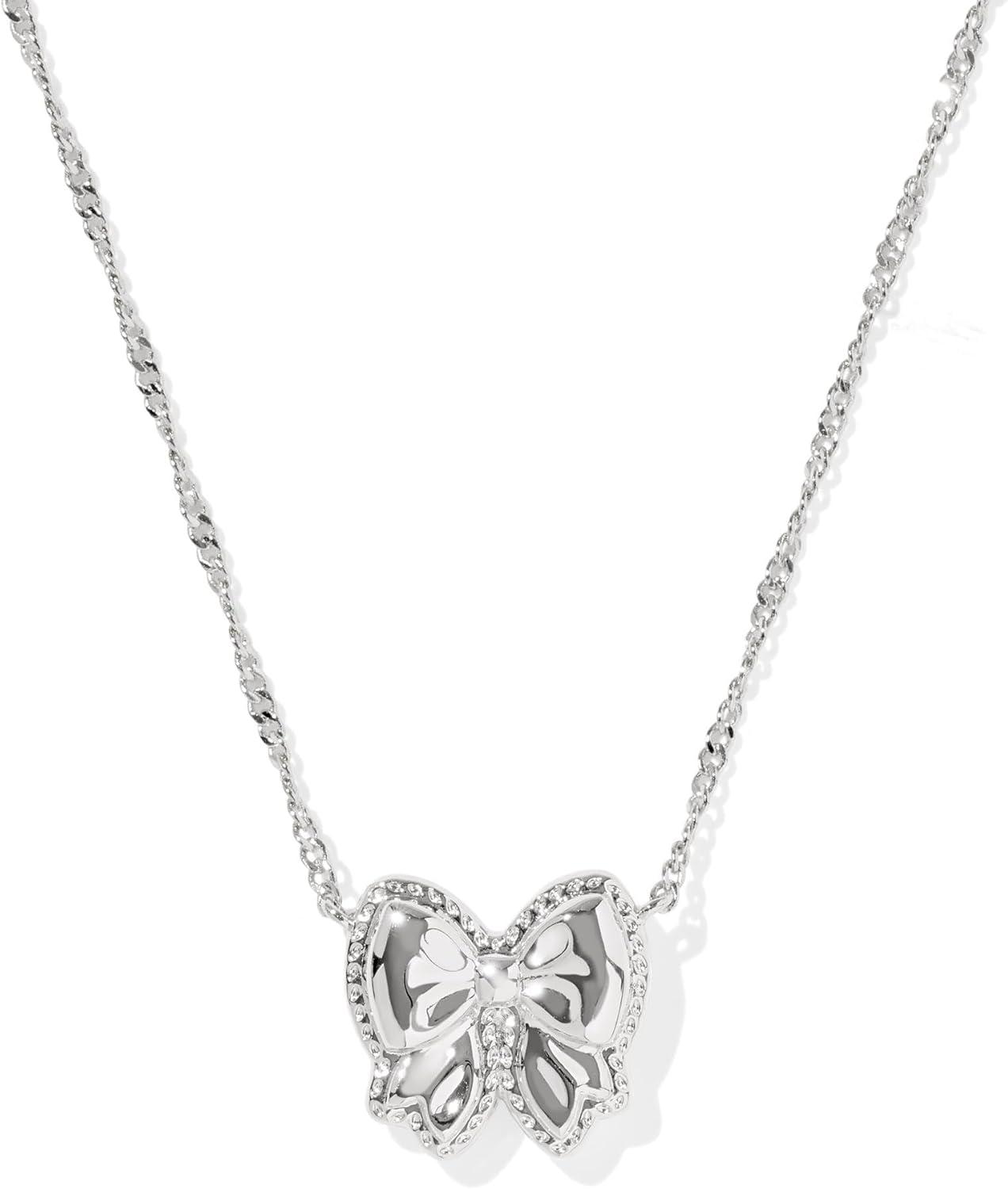 Kendra Scott Haley Bow Short Pendant Necklace, Fashion Jewelry for Women(RHODIUM – IVORY MOTHER OF PEARL)